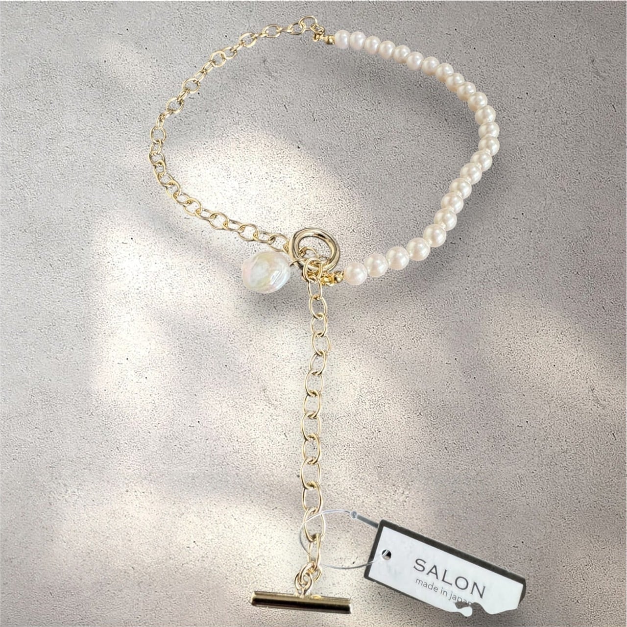 洗練されたデザインが魅力のパールラリエット。しなやかなラインと美しい光沢が首元を華やかに飾り、日常使いから特別な場面まで、多様なシーンにマッチします。軽やかな着用感で、長時間の使用でも快適にお楽しみいただけるアイテムです!