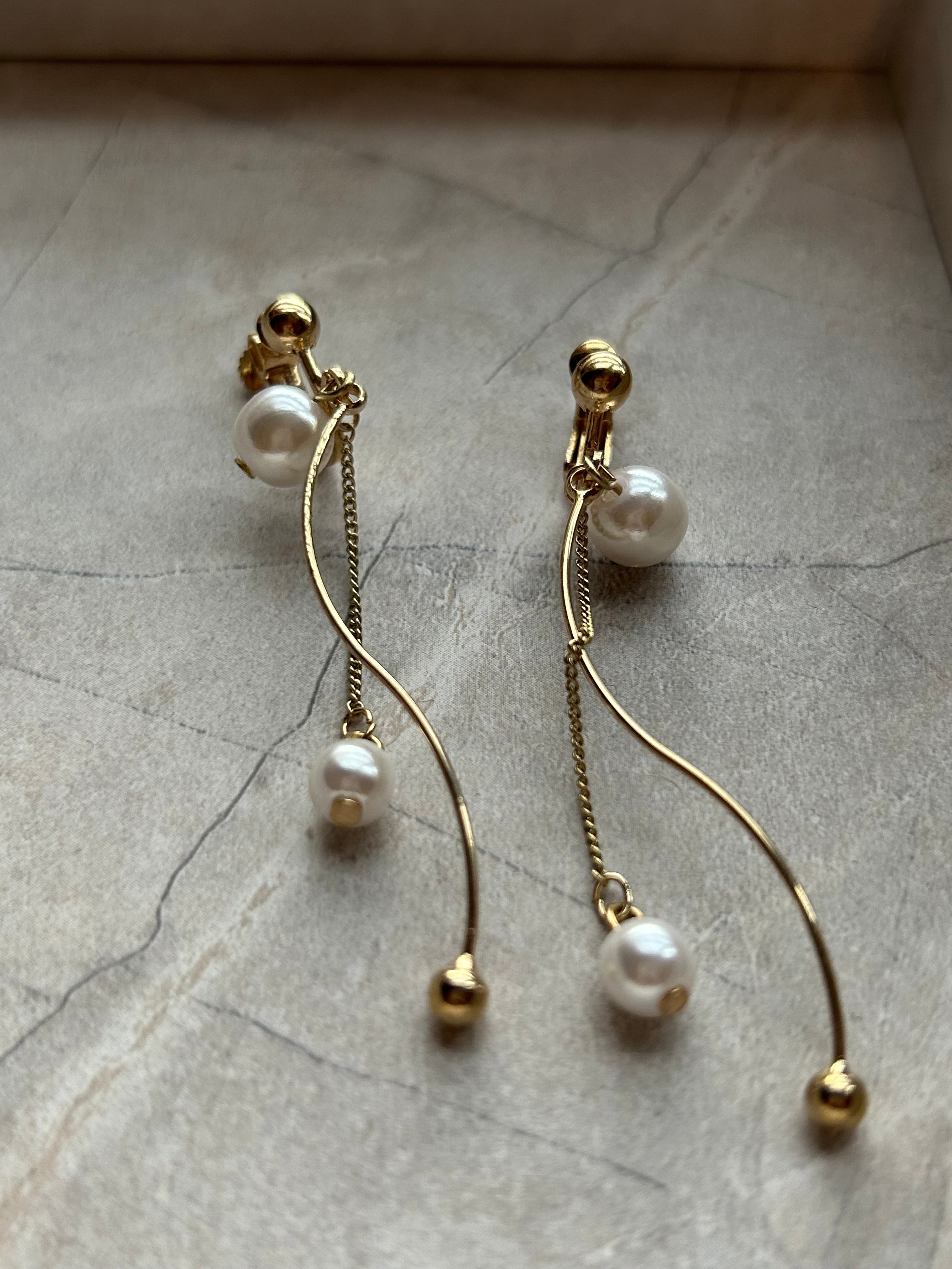 2連チェーン パール スウィング イヤリング